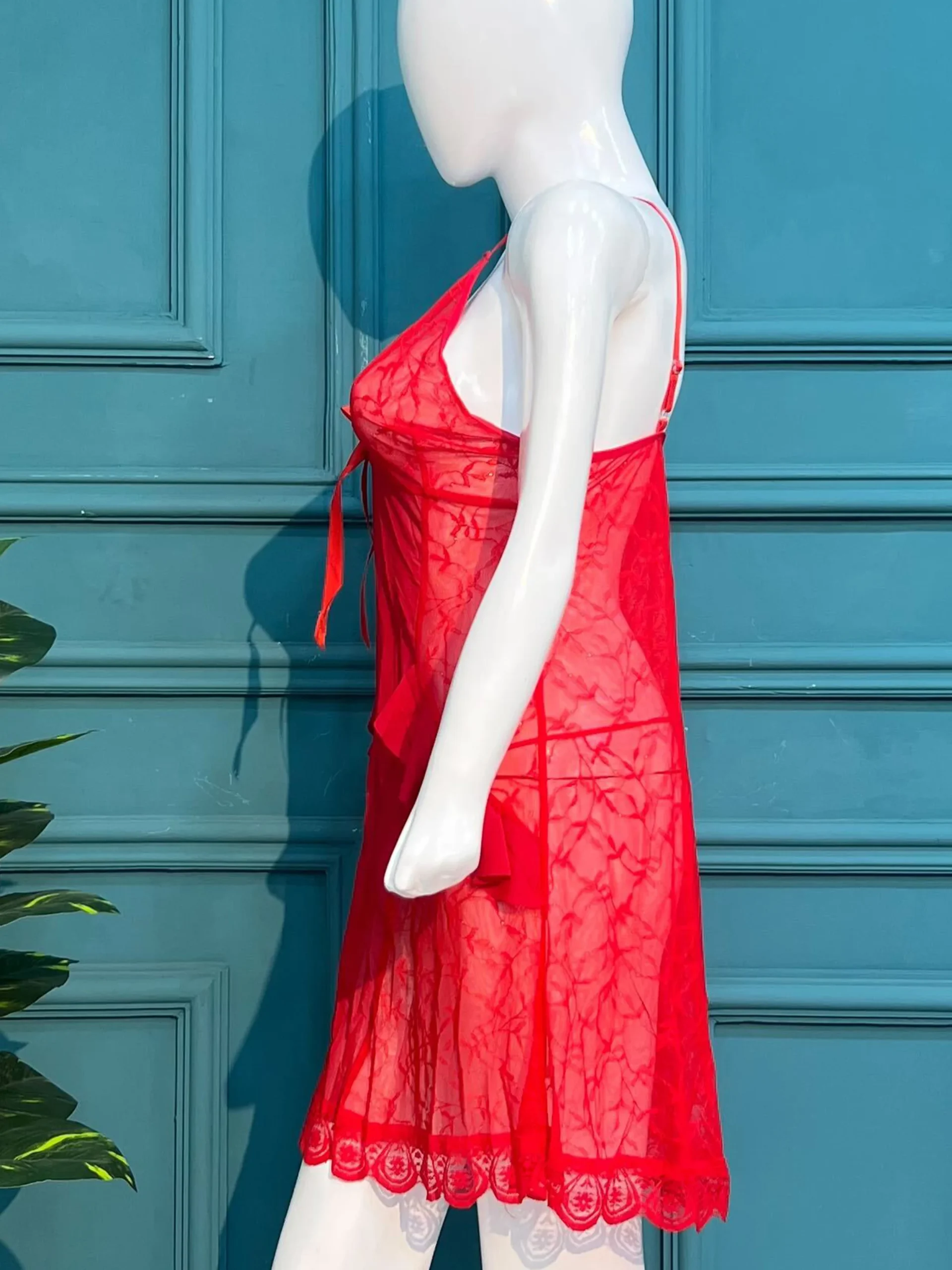 Elegance in Lace: Crimson Red Sheer Babydoll Nightwear