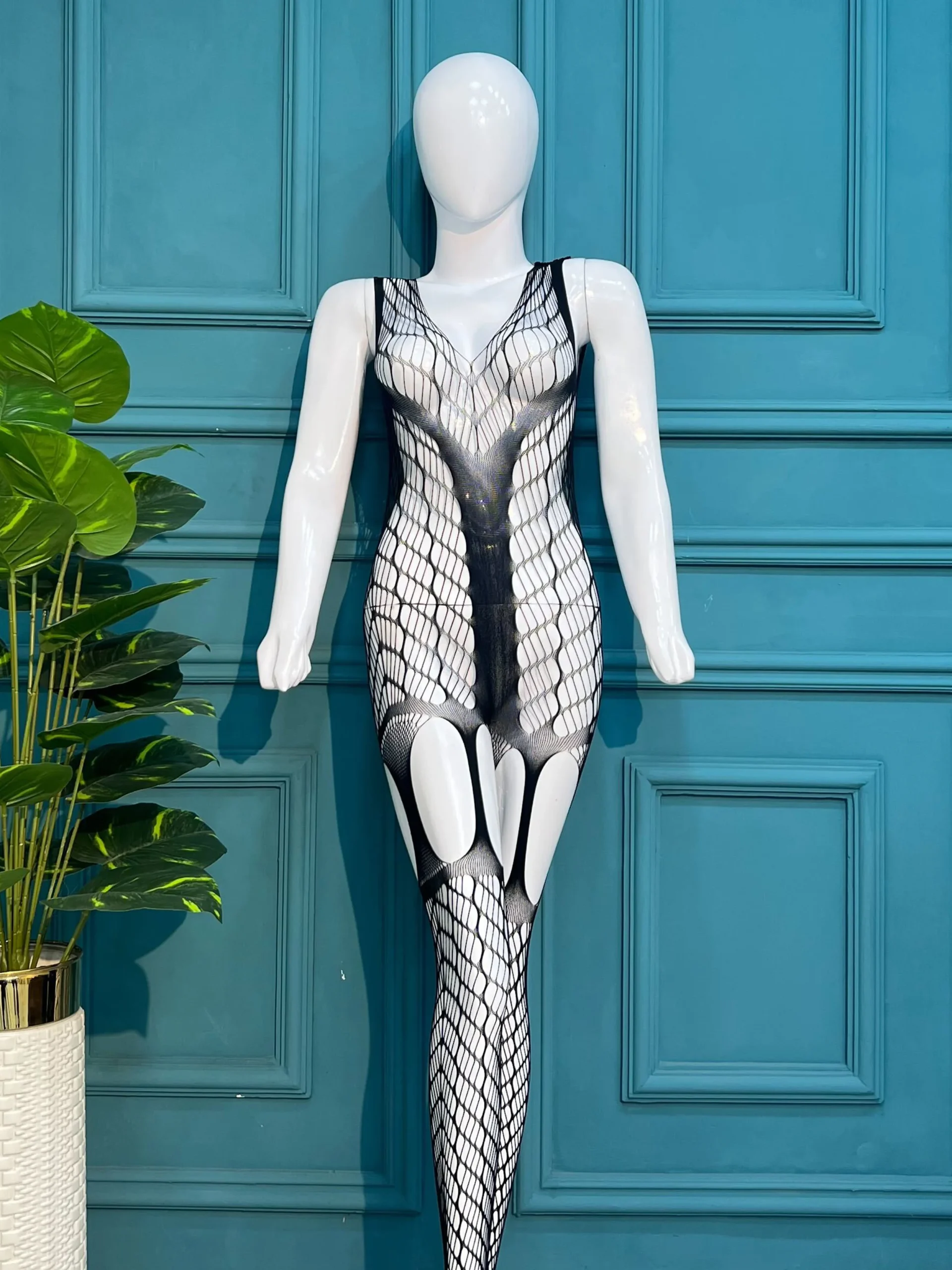 Crafted from ultra-soft, high-elasticity fabric, this piece provides a seamless “second-skin” fit that moves with you. The intricate open-knit detailing and full-length coverage make it a versatile statement piece, perfect for layering under festival wear, styling for a high-fashion photoshoot, or adding a touch of dark romance to your evening.
