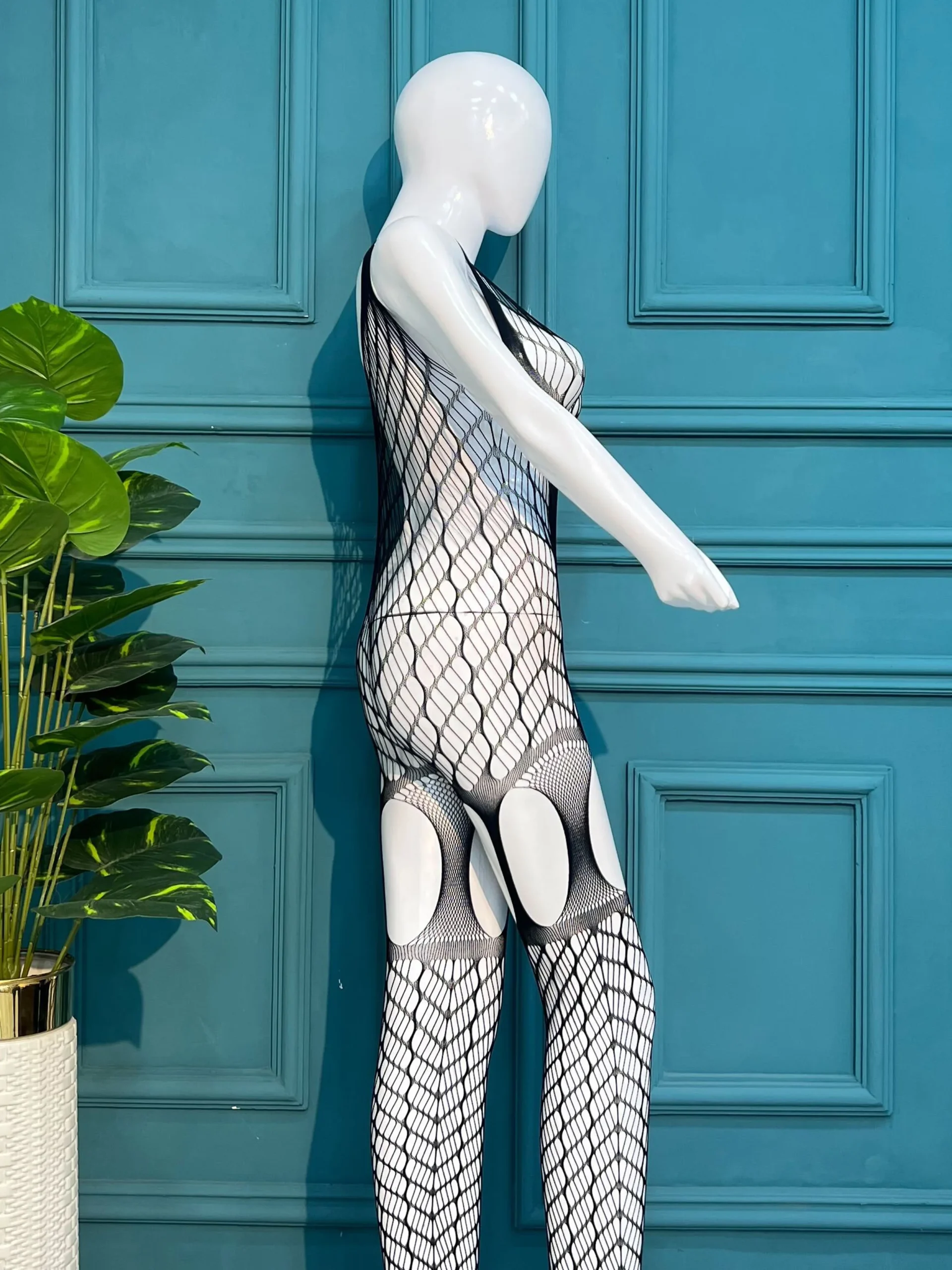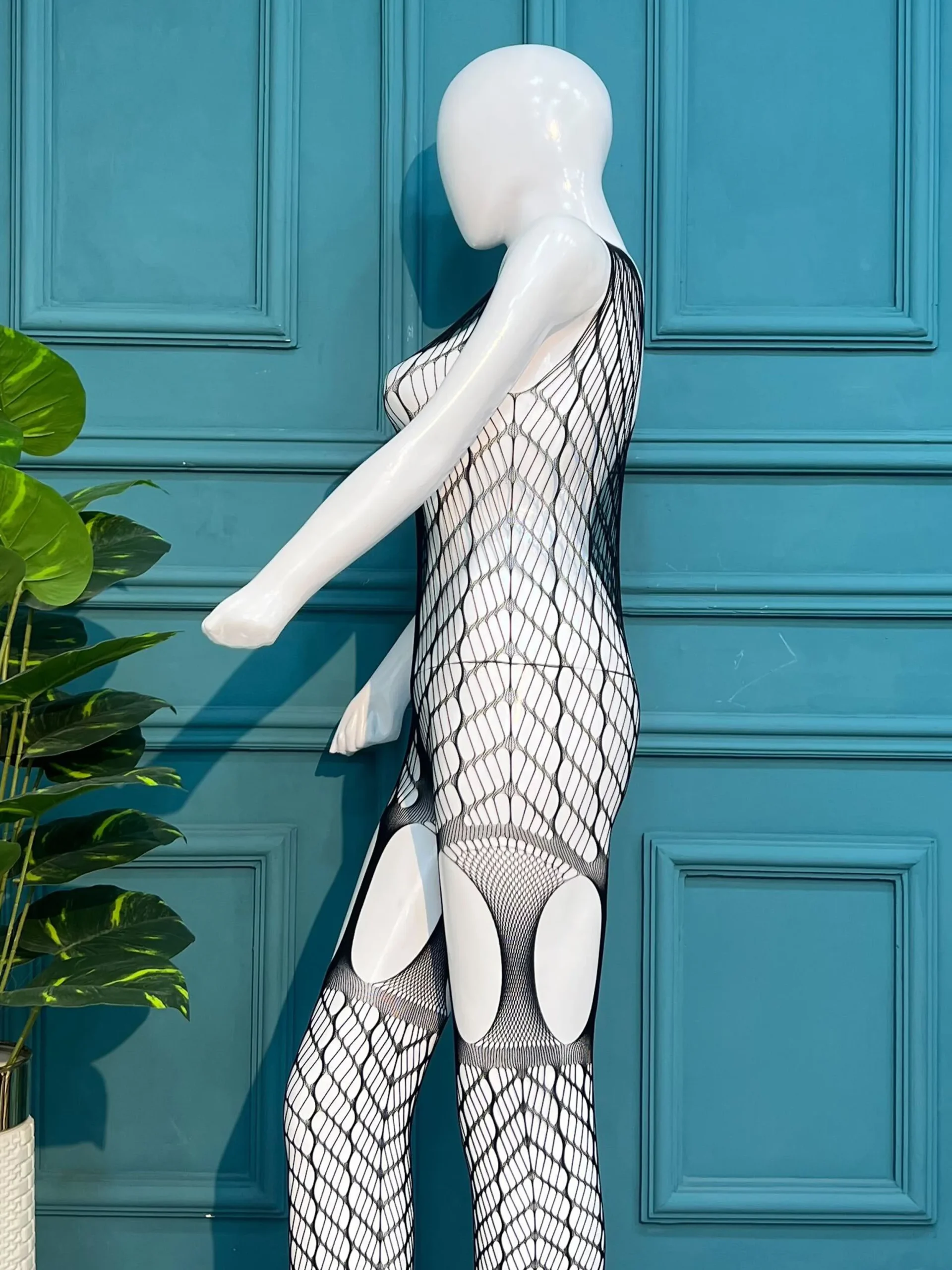 Elevate your lingerie collection with this stunning, high-definition mesh bodystocking. Designed to contour the body with an artistic flair, it features a unique spider-web geometric pattern that creates a bold, avant-garde aesthetic.