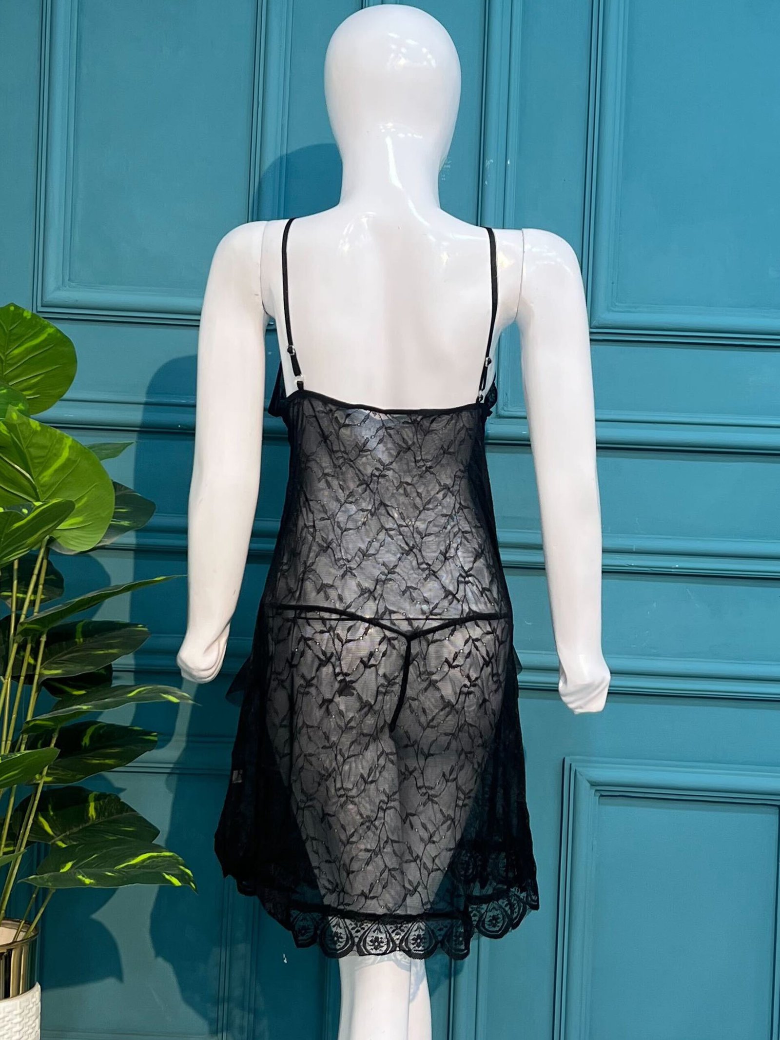 Elevate your evening collection with this exquisite black lace chemise. Designed for both comfort and allure, this piece features delicate floral embroidery and a sheer, lightweight mesh that drapes beautifully.